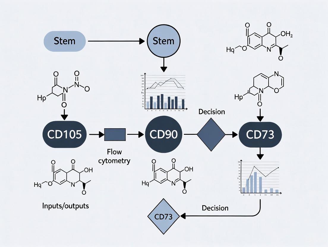 Within this context, flow cytometric analysis of surface markers—particularly CD105, CD90, and CD73—has emerged as an indispensable tool for MSC identification and quality control. This technical guide examines the ISCT criteria through the lens of modern stem cell phenotyping, providing researchers with detailed methodologies, data interpretation frameworks, and practical tools for rigorous MSC characterization within the broader scope of stem cell research and therapeutic development.
