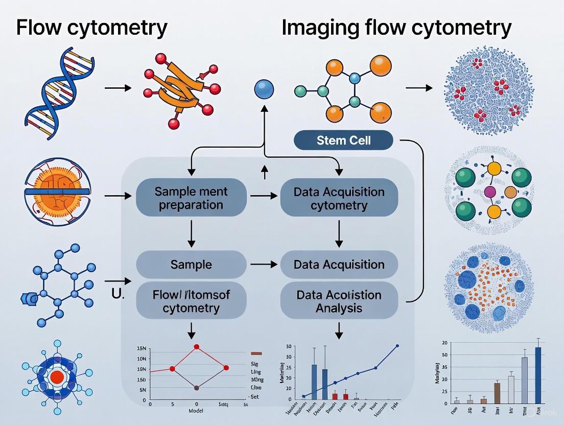 Organoid Analysis: Both flow cytometry and imaging flow cytometry are being increasingly applied to characterize complex three-dimensional stem cell-derived organoids. Flow cytometry enables quantitative analysis of cellular heterogeneity within dissociated organoids, while imaging flow cytometry can provide structural context and spatial relationships between different cell types within partially dissociated organoid fragments [71].