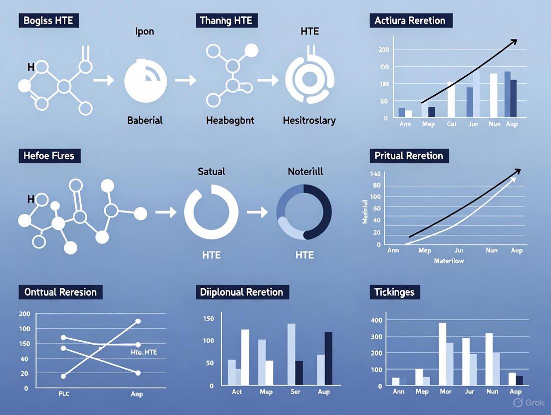 In HTE analysis, we consider a dataset comprising patient covariates ( X ), a treatment assignment ( T ), and an outcome ( Y ). The goal is to estimate the conditional average treatment effect ( \tau(x) = E[Y(1) - Y(0) | X = x] ), where ( Y(1) ) and ( Y(0) ) represent potential outcomes under treatment and control, respectively.